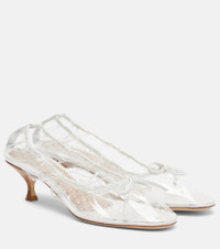 No matter the weather, Herbert Levine's Rain Check pumps showcase effortless elegance. The design is crafted from PVC and stands out with gathered detailing on the uppers, bow and leather trims, and comfortable 50mm heels. Product Details - Upper: plastic - Lining: plastic - Sole: leather insole, leather and rubber sole - Color: white - Toe shape: round toe - Made in Italy - Includes: shoe box, dust bag - Designer color name: Clear/White - Item color: transparent, white - Trim: leather - Item number: P01106089 Size & Fit - True to size - Half sizes please take the next size down - European sizes - 5cm-2" heel (size EU 38)