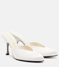 Herbert Levine’s designs are examples of timeless craftsmanship seamlessly paired with modern detailing. The Sitting Pretty mules are crafted in Italy from lucent satin and feature charming pointed-toe silhouettes and sleek heels. Product Details - Upper: fabric - Lining: leather - Sole: leather insole and sole - Color: white - Toe shape: pointed toe - Made in Italy - Includes: shoe box - Designer color name: Egg Shell - Details: crystals - Item number: P01173811 Size & Fit - True to size - European sizes - 9,5cm-3.5" heel