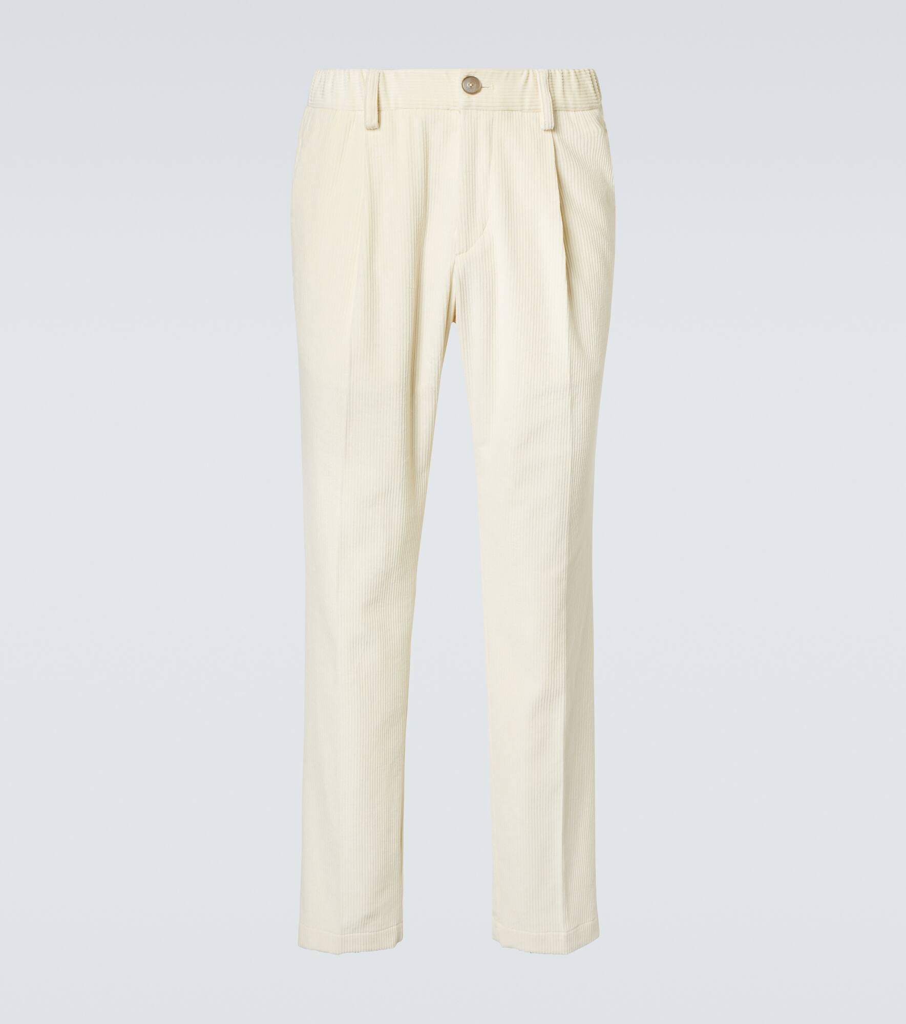 Product Details - Material: 91% cotton, 8% cashmere, 1% elastane - Care instructions: machine wash at 30 degrees - Made in Moldova - Designer color name: Bianco - Pockets: side slit pockets, back pockets - Closure: buttoned front, zipped front - Belt loops - Item number: P00954122 Size & Fit - True to size - Elasticated waist - Adjustable at the waist - Non-stretchy fabric - Slim-leg - The model in the picture is 185cm-6'1" and wearing a size M