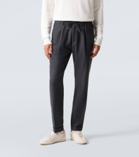 At the heart of Herno’s philosophy lies a commitment to functionality, innovation, and precision. Designed for in-office and off-duty wear, these gabardine straight pants feature an elasticated drawstring waist, side slits, and back pockets. Product Details - Material: 43% wool, 28% viscose, 27% polyester, 2% elastane - Care instructions: dry clean - Made in Italy - Designer color name: Ferro - Item color: gray - Lining: 100% cotton - Closure: zipper fly, button fastening - Pockets: side slit pockets, back pockets - Elasticated drawstring waist - Item number: P01070028 Size & Fit - True to size - Elasticated waist - Adjustable at the waist - Non-stretchy fabric - Straight leg - The model in the picture is 185cm-6'1" and wearing a size L