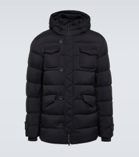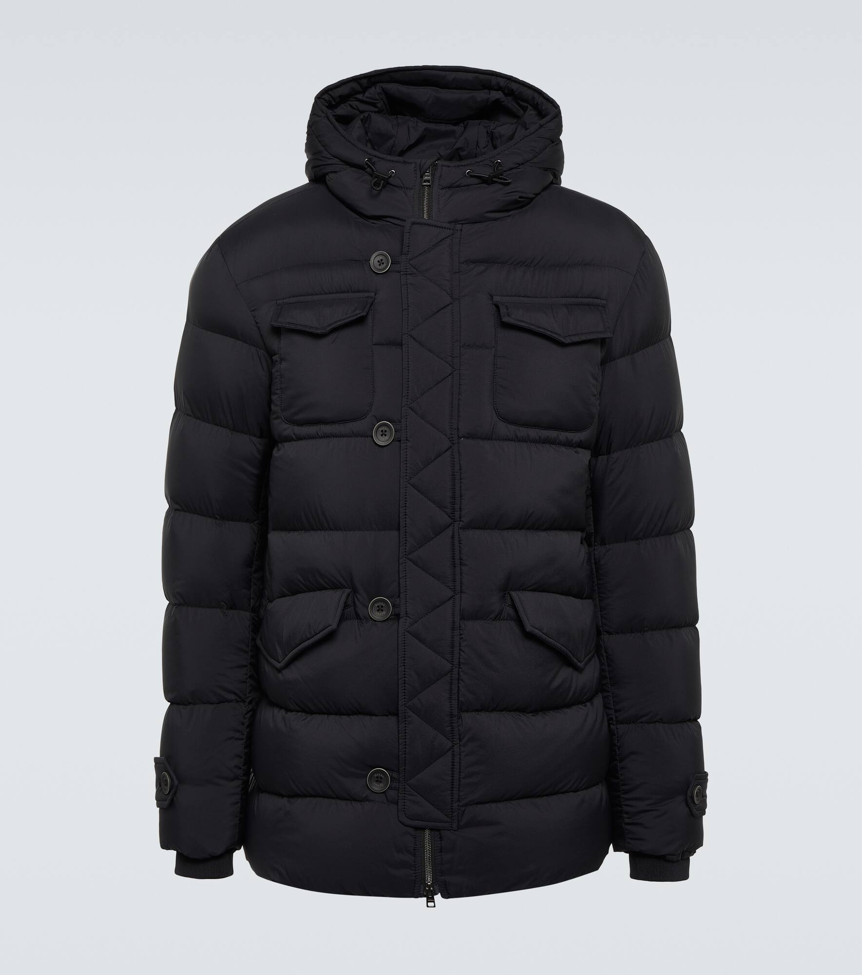 Product Details - Material: 100% polyamide - Care instructions: dry clean - Made in Romania - Designer color name: Nero - Lining: 100% polyamide - Filling: 90% down, 10% feathers - Contains non-textile parts of animal origin - Drawstring hood - Closure: zipper fly, button fastening - Pockets: snap-buttoned pockets - Item number: P00950021 Size & Fit - True to size - Straight fit - Non-stretchy fabric - Falls below the hip - The model in the picture is 185cm-6'1" and wearing a size IT 48