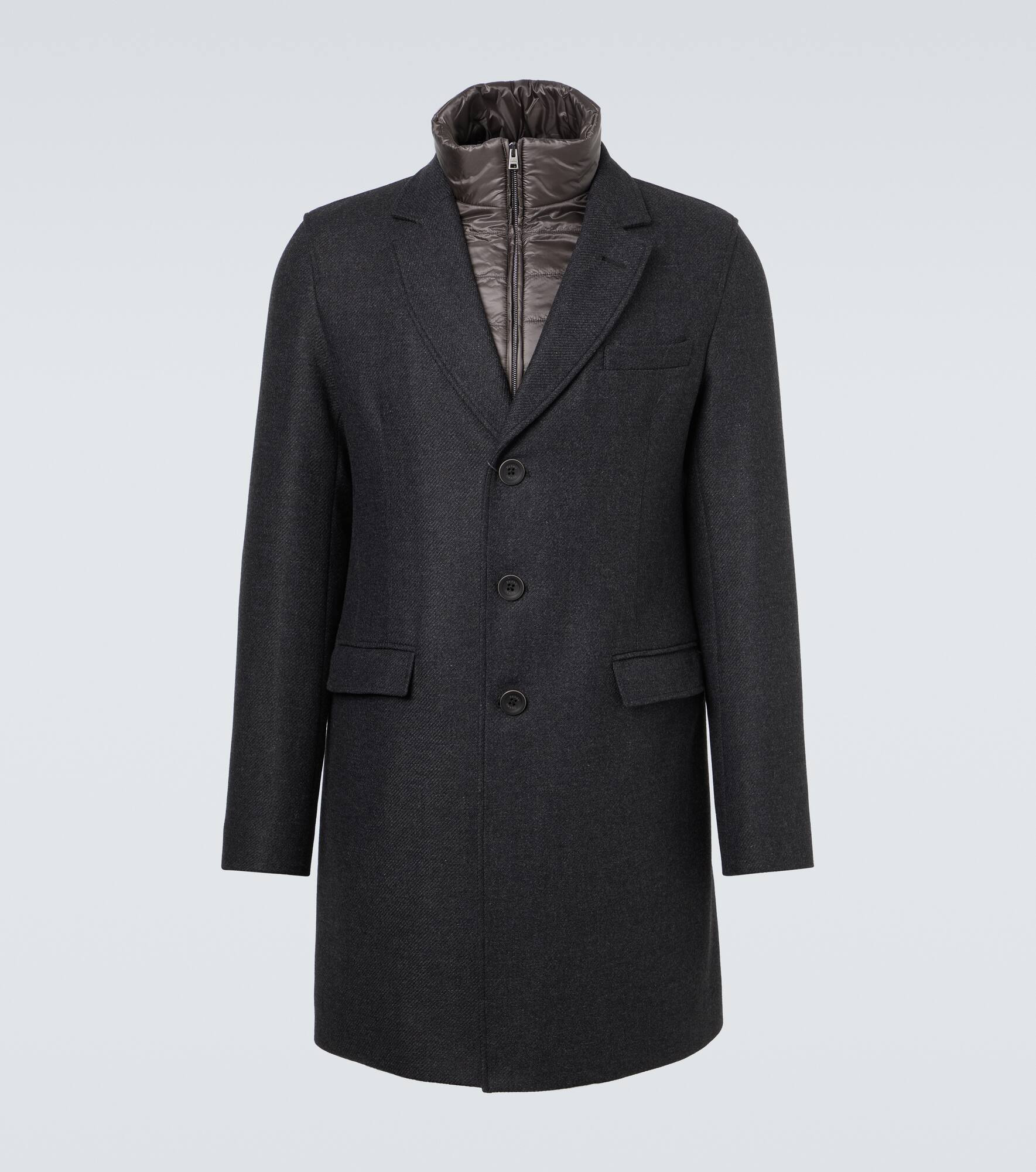 An expert in weatherproof outerwear, Herno was created to tackle the unpredictable climate of Italy’s Erno Valley. The coat was made from a wool blend and features a buttoned and zipped front and flap pockets. Product Details - Material: 71% wool, 25% polyamide, 4% other fibres - Care instructions: dry clean - Made in Italy - Designer color name: Antracite - Item color: gray - Material II: 100% polyamide - Filling: 100% polyester - Closure: buttoned front, zipped front - Pockets: flap pockets - Notched lapel - Vent: single - Item number: P01070029 Size & Fit - True to size - Straight fit - Non-stretchy fabric - Height of model is 188cm-74" and wears a size IT 50