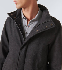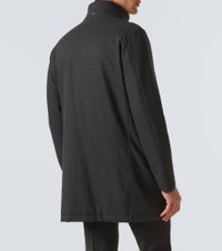Product Details - Material: 100% wool - Care instructions: dry clean - Made in Italy - Designer color name: Antracite - Lining: 100% polyamide - Filling: 100% polyester - Trim: 90% polyester, 10% elastane - Closure: two-way zipped front with snap-button fastenings - Pockets: snap-buttoned pockets, internal pockets - Length: long (thigh-length) - Sleeves: long-sleeved - Item number: P00954075 Size & Fit - True to size - Straight fit - Non-stretchy fabric - Falls below the hip - The model in the picture is 185cm-6'1" and wearing a size IT 48
