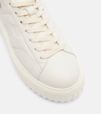 The H-Stripes sneakers from Hogan are made from leather and rest on lightweight platform soles for optimal comfort. Sleek and casual, they feature subtle monogram detailing on the sides. Product Details - Upper: leather - Lining: fabric, leather - Sole: fabric insole, rubber sole - Color: white - Toe shape: round toe - Made in Italy - Includes: extra laces, dust bag, shoe box - Designer color name: B013+C202 - Closure: lace-up - Item number: P01137916 Size & Fit - True to size - European sizes - 4,5cm-2" platform - 5,5cm-2" wedge heel