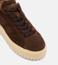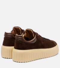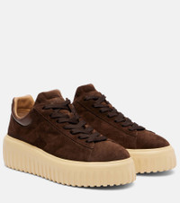 Step into the world of Hogan, the Italian brand that blurs the boundaries between formal and informal footwear. Meticulously crafted from suede, the H-Stripes platform sneakers feature extra-light outsoles and memory foam insoles that promise optimal cushioning. Product Details - Upper: leather (suede) - Lining: fabric, leather - Sole: fabric insole, rubber sole - Toe shape: round toe - Made in Italy - Includes: extra laces, dust bag, shoe box - Designer color name: Coconut - Item color: brown - Item number: P01080330 Size & Fit - True to size - European sizes - 4,5cm-2" platform (size EU 38) - 5,5cm-2" wedge heel (size EU 38)