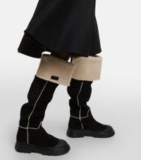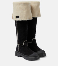 Cold-weather strolls require warm, sturdy shoes, such as the H619 knee-high boots from Hogan. Made from smooth suede, they feature turn-up shafts, bouclé fleece lining, and lugged rubber outsoles for optimum grip. Product Details - Upper: calf leather - Lining: fabric - Sole: fabric insole, rubber sole - Toe shape: round toe - Made in Italy - Includes: shoe box, dust bag - Trim: fabric - Item number: P00833404 Size & Fit - True to size - Narrow fit due to lining - European sizes - 4,5cm-2" heel (size EU 38) - 3,5cm-1.5" platform (size EU 38) - 44cm-17.5" shaft height (size EU 38) - 39cm-15.5" shaft width (size EU 38) - shaft width measured on largest part of boot