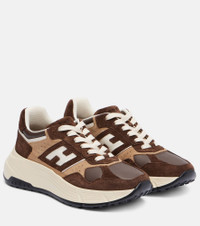 Crafted in Italy from suede and leather, the H669 sneakers from Hogan feature memory foam insoles and chunky rubber outsoles. This design showcases the brand's signature H motif on the sides. Product Details - Upper: leather (suede), leather - Lining: fabric, leather - Sole: fabric insole, rubber sole - Toe shape: almond toe - Made in Italy - Includes: shoe box - Designer color name: C808+S610+B013 - Item color: brown - Item number: P01081018 Size & Fit - True to size - European sizes - 4cm-1.5" platform (size EU 38) - 6,5cm-2.5" wedge heel (size EU 38)