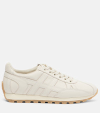 The H671 sneakers from Hogan seamlessly fuse style and versatility. Perfect for everyday wear, they're made in Italy from smooth suede and rest atop comfortable rubber soles. Product Details - Upper: leather - Lining: fabric, leather - Sole: leather insole, rubber sole - Toe shape: almond toe - Made in Italy - Includes: dust bag, shoe box - Designer color name: Yogurt - Item color: beige - Item number: P01080309 Size & Fit - True to size - European sizes - 2,5cm-1" platform (size EU 38) - 3cm-1" wedge heel (size EU 38)
