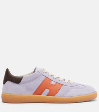 Retro references define the Hogan Cool sneakers, reinterpreting Hogan's historic H327 style. Made from tactile suede with lightweight rubber soles that wrap the sides, this low-top style has serrated "H" sidewalls. Product Details - Upper: calf leather (suede) - Lining: fabric - Sole: fabric insole, rubber sole - Color: purple - Toe shape: round toe - Made in Italy - Includes: dust bag, shoe box, extra laces - Designer color name: L031+S610+G606 - Item color: purple - Item number: P01137907 Size & Fit - True to size - European sizes