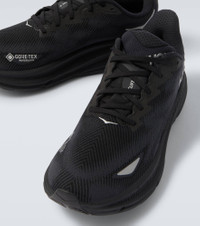 Hoka One One's Clifton 9 GTX sneakers combine lightweight cushioning with GORE-TEX protection. Designed for comfort in varied conditions, the pair features a responsive midsole and enhanced grip for everyday performance. Product Details - Upper: fabric, rubber - Lining: fabric - Sole: fabric insole, rubber sole - Toe shape: almond toe - Made in Vietnam - Includes: shoe box - Designer color name: Black \ Black - Item color: black - Closure: lace-up - Item number: P01075920 Size & Fit - Fits small to size - we recommend trying one size larger - US sizes