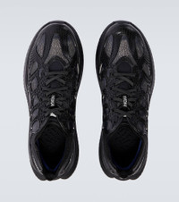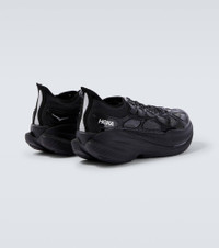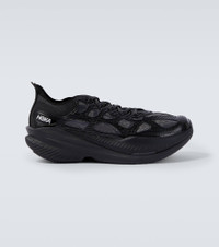 The Mach x Caged running shoes from Hoka One One fuse elite-level performance with futuristic aesthetic. They feature a textured TPU cage, Pebax® plate, superfoam cushioning, and transparent mesh underlays for exceptional energy return and standout style. Product Details - Upper: rubber, fabric - Lining: fabric - Sole: fabric insole, rubber sole - Toe shape: round toe - Made in Vietnam - Includes: shoe box, extra laces - Designer color name: Black / Midnight Blue - Item color: black - Item number: P01075902 Size & Fit - Fits small to size - we recommend trying one size larger - US sizes