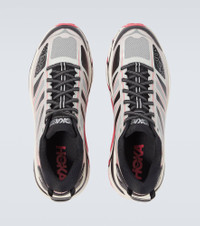 The Mafate Speed 2 running shoes from Hoka One One are designed for endurance and technical terrain. The design features the brand's Vibram® MegaGrip soles and plush cushioning, delivering exceptional traction, support, and standout multicolored style. Product Details - Upper: fabric - Lining: fabric - Sole: fabric insole, rubber sole - Toe shape: almond toe - Made in Vietnam - Includes: extra laces, shoe box - Designer color name: Galactic Grey / Ruby Red - Item color: gray, red - Item number: P01061470 Size & Fit - Fits small to size - we recommend trying one size larger - Unisex style - US sizes