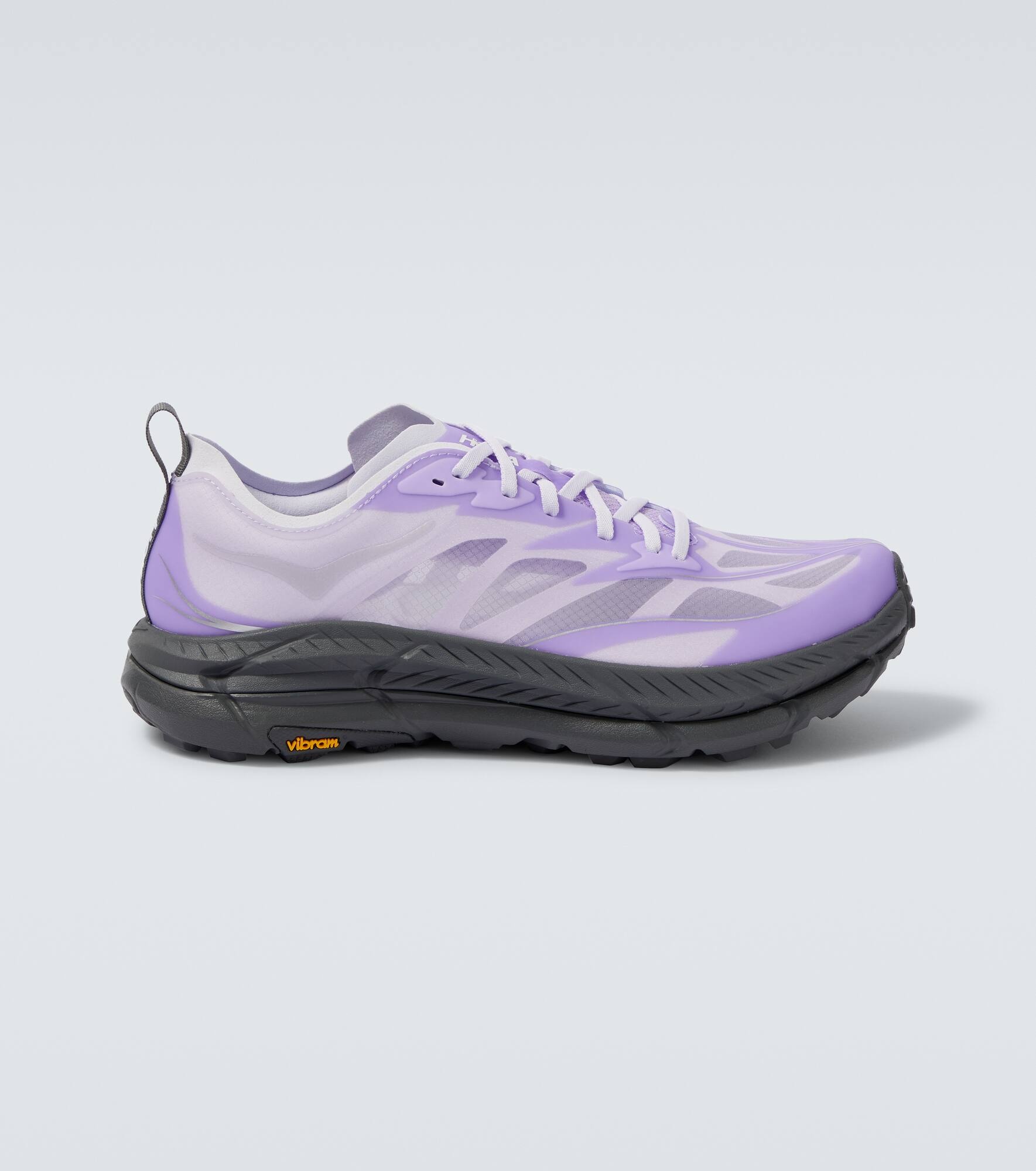 The Mafate Speed 4 Lite sneakers feature a responsive midsole and rugged outsole for optimal traction on varied terrain. Designed for performance and stability, they embody Hoka One One’s advanced approach to trail running technology. Product Details - Upper: fabric, rubber - Lining: fabric - Sole: fabric insole, rubber sole - Toe shape: almond toe - Made in Vietnam - Includes: shoe box - Designer color name: Starlight Glow / Aster Flower - Item color: purple - Item number: P01061468 Size & Fit - Fits small to size - we recommend trying one size larger - US sizes