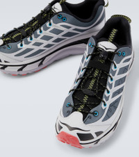 Hoka One One's Mafate Three2 sneakers combine the best-loved features of its forerunners. Spot the cushioned soles, the gusseted tongues, and thoughtful quick-lace construction. Product Details - Upper: rubber, fabric - Lining: fabric - Sole: fabric insole, rubber sole - Toe shape: round toe - Made in Vietnam - Includes: shoe box - Designer color name: Ash Grey / Outer Orbit - Item color: gray, black - Item number: P01075916 Size & Fit - Fits small to size - we recommend trying one size larger - US sizes