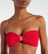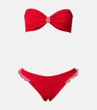 The Jean bikini from Hunza G features seersucker gingham detailing. This swimwear piece is made using the brand's Seamless Crinkle Technology. Product Details - Material: 97% polyamide, 3% elastane - Care instructions: hand wash - Made in Morocco - Designer color name: Red/Red - Item color: red, white - Two-piece set - High-rise - Item number: P01052577 Size & Fit - True to size - One size: perfect fit for sizes XS-M - Strapless - Cup size: B - Minimal coverage - Medium-cut leg