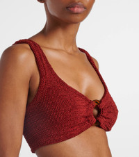 Pack the Julia bikini from Hunza G for your next warm-weather getaway. This swimwear piece is made using Hunza G's Seamless Crinkle Technology, making it one-size-fits-all. Featuring high-cut bikini bottoms and an O-ring detail bikini top, the set is primed to become a staple in your vacation rotation. Product Details - Material: 97% polyamide, 3% elastane - Care instructions: machine wash at 30 degrees - Made in the UK - Designer color name: Chestnut / Choc - Item color: brown - Two-piece set - Item number: P01052557 Size & Fit - True to size - One size: perfect fit for sizes XS-L - Unpadded Top - High-cut leg - One size