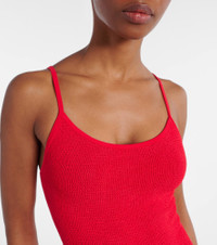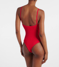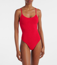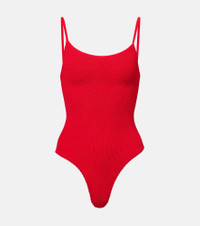 Versatile and elegant, the Petra swimsuit is the ideal foundation for your vacation-ready ensembles. This swimwear piece is made using Hunza G's Seamless Crinkle Technology, making it one-size-fits-all. Note the spaghetti straps and high-cut legs that ensure a chic finish. Product Details - Material: 97% polyamide, 3% elastane - Care instructions: machine wash at 30 degrees - Made in the UK - Designer color name: Red - Item color: red - Two-piece set - Item number: P01052547 Size & Fit - True to size - One size: perfect fit for sizes XS - L - Unpadded Top - High-cut leg