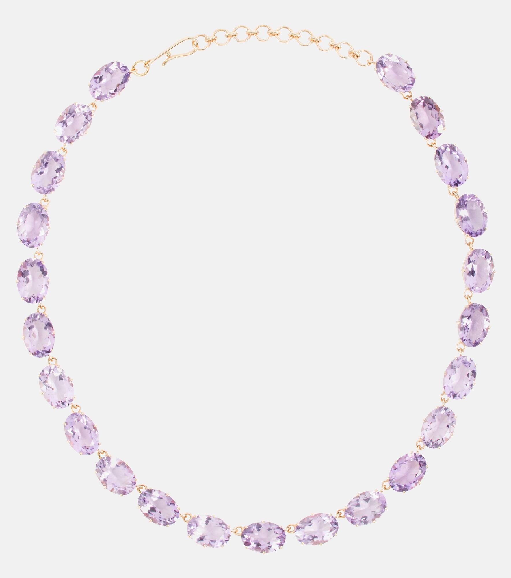 This short-drop necklace from Ileana Makri showcases dazzling pink amethysts that are prong-set in 14kt yellow gold. An adjustable 18kt gold clasp fastening provides customizable wear. Product Details - Material: 14kt yellow gold, 18kt yellow gold - Stone I: amethyst - Closure: clasp fastening - Made in Greece - Designer color name: 14k Yellow Gold - Item number: P00709810 Size & Fit - Adjustable length - Width 11mm-0.45" - Min. length 40cm-15.5" - Max. length 46cm-18"