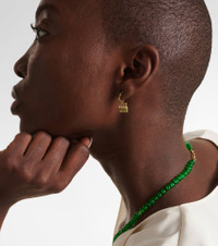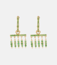 Ileana Makri looks to nature to create these riveting earrings that emulate the movement of grass in the wind. Made from 18kt yellow gold in one of the designer's Athenian ateliers, this miniature hoop pair is strewn with pavé-set tsavorites totaling 0.55 carats. Product Details - Material: 18kt yellow gold - Stone I: tsavorite, round-cut, pavé setting - Closure: post-back fastening - Made in Greece - For pierced ears - Designer color name: 18k Yellow Gold - Item number: P00709817 Size & Fit - Length 20mm-0.8" - Max. width 11mm-0.45" - Inner diameter 7mm-0.3"
