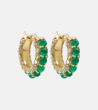 Streamflow 18-karat gold, emerald and diamond hoop earrings Green