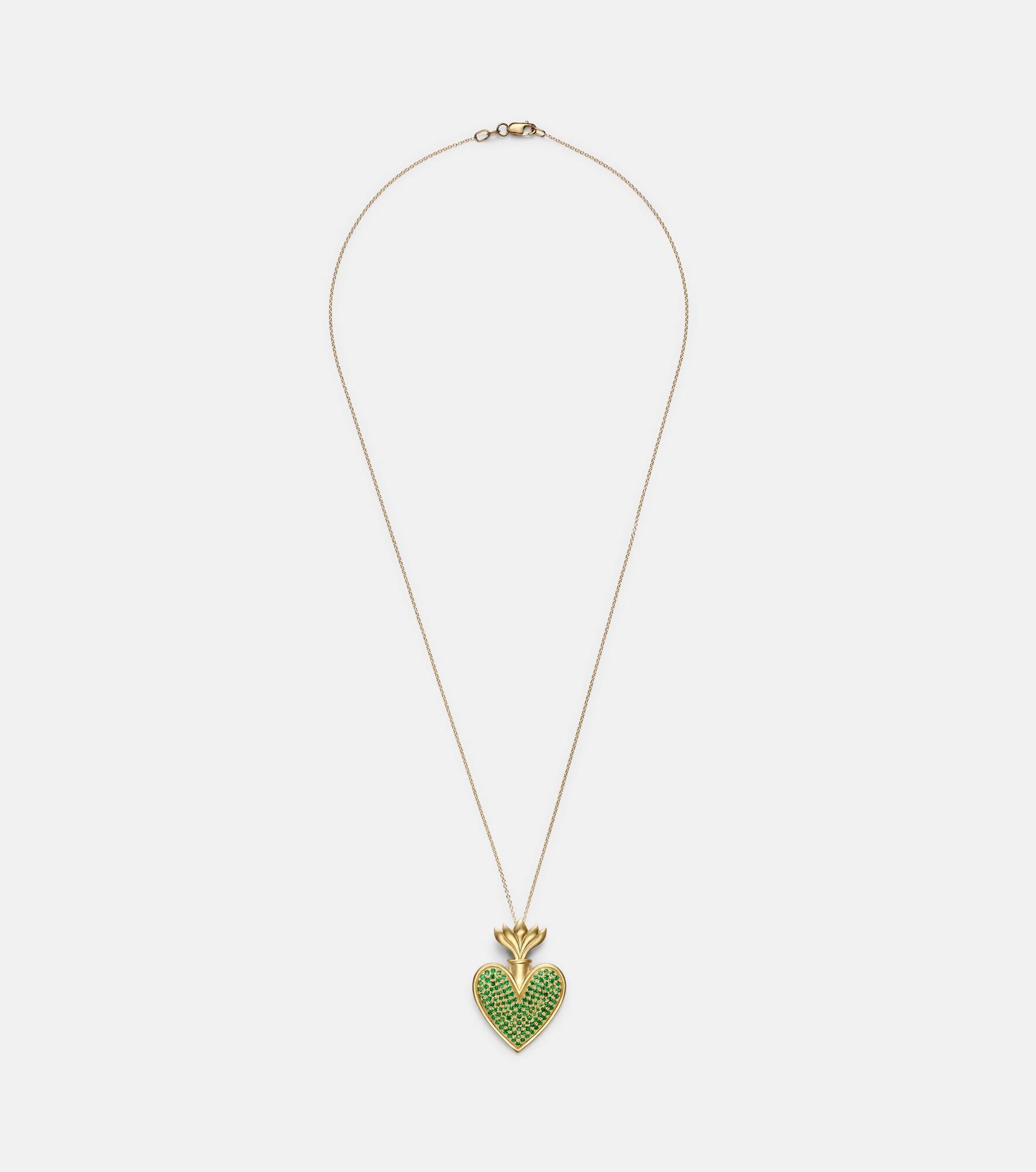 Blowing Heart 18kt gold pendant necklace with Tsavorites