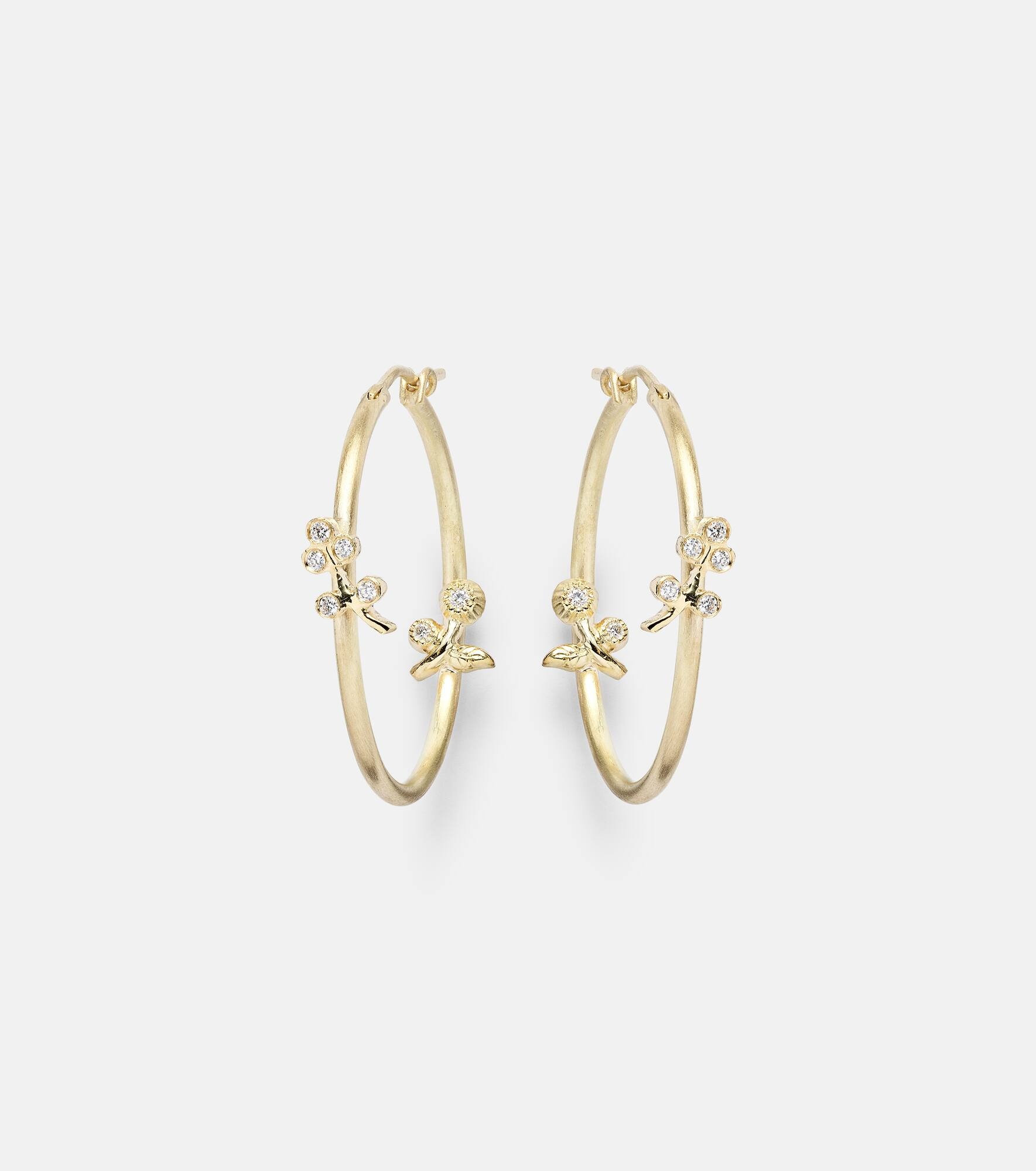 Lavender Medium 18kt gold hoop earrings with diamonds