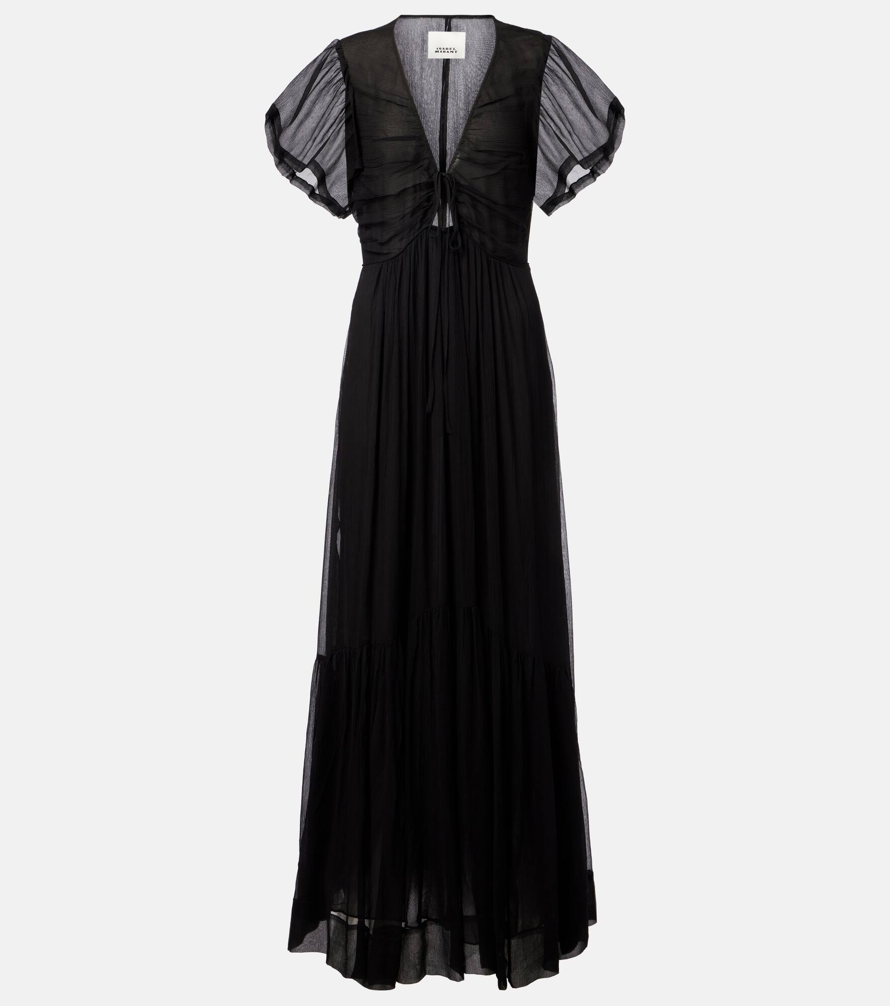 The Agathe maxi dress is made from silk and detailed with subtle gathering. A testament to authentic and effortless Parisian style, each Isabel Marant piece is designed to get you from A to B. Product Details - Material: 100% silk - Care instructions: dry clean - Made in India - Designer color name: Black - Item color: black - Lining: 100% viscose - Item number: P01062236 Size & Fit - True to size - Cinched waist - Non-stretchy fabric - The model seen in the picture is 178cm-5'10" and wearing a size FR 36