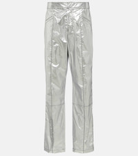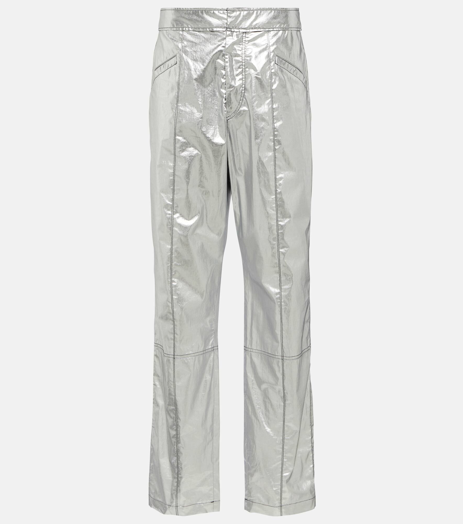 A testament to authentic and effortless Parisian style, each Isabel Marant piece is designed to get you from A to B. Step into the spotlight with the Anea pants: they're made from cotton and coated for a metallic finish. Product Details - Material: 85% cotton, 15% polyurethane - Care instructions: hand wash - Made in Ukraine - Designer color name: Silver - Lining: 100% cotton - Closure: zipper fly, button and hook fastenings - Pockets: slit pockets, back pockets - Item number: P00841001 Size & Fit - Fits large to size - we recommend trying one size smaller - Lightweight material - Straight leg - High-waisted - The model seen in the picture is 178cm-5'10" and wearing a size FR 34