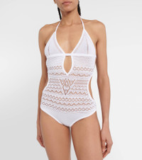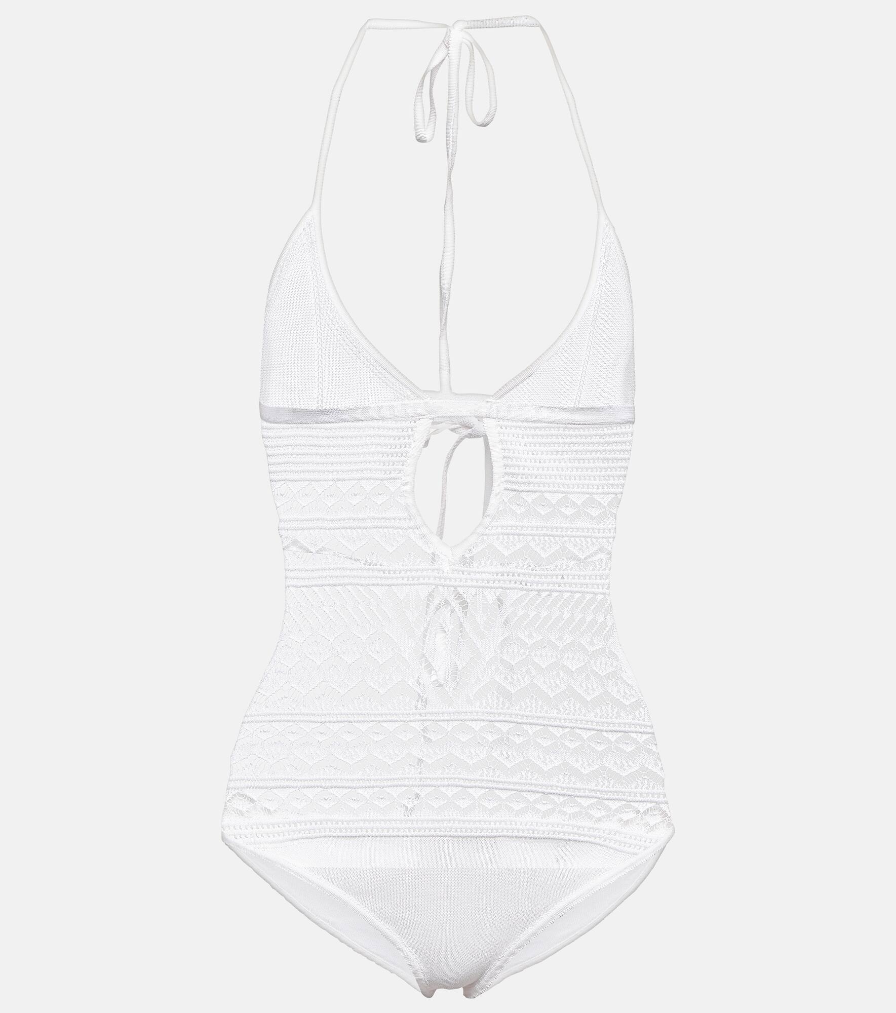 Adema tie-detailed crocheted cotton-blend halterneck bodysuit