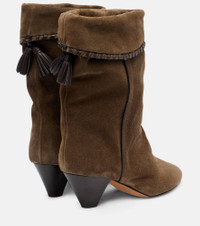 The Dalby suede boots from Isabel Marant bring a Western-inspired aesthetic to your look. Shaped with 55mm cone heels, their design boasts turn-down uppers finished with braided leather trims and tassels. Product Details - Upper: calf leather (suede) - Lining: calf leather - Sole: leather insole and sole - Toe shape: almond toe - Made in Portugal - Includes: dust bag, shoe box - Designer color name: Bronze - Item color: brown - Item number: P01070658 Size & Fit - True to size - Slightly narrow - Half sizes please take the next size up - French sizes - 5,5cm-2" heel (size EU 38)