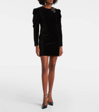 Inspired by Parisian style, each Isabel Marant piece blends refined design with effortless looks for daily life. The Danee minidress is crafted from soft velvet with puff sleeves and dazzling embellishments at the neckline. Product Details - Material: 97% cotton, 3% elastane - Care instructions: dry clean - Made in Romania - Designer color name: Black - Item color: black - Material II: 96% silk, 4% elastane - Hardware color: silver - Closure: concealed zipper, zipped back, hook-fastening back - Includes: dust bag - Item number: P01095414 Size & Fit - Fits large to size - we recommend trying one size smaller - Oversized shoulders - Cinched waist - Slightly stretchy fabric - The model seen in the picture is 178cm-5'10" and wearing a size FR 34