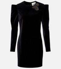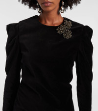 Danee embellished cotton-velvet mini dress Black