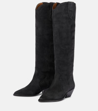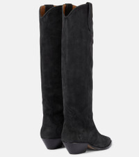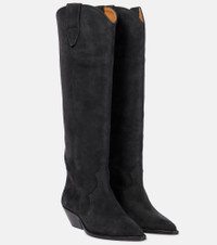 Staying 1 to Isabel Marant's penchant for an all-American aesthetic, the black Denvee boots draw inspiration from classic western silhouettes. Made from suede, they have block heels, pointed toes, and arrive at a knee length with pull tabs and contoured peaks. Style with a floral minidress for a bohemian-inspired look. Product Details - Lining: leather - Upper: calf leather - Sole: leather insole and sole - Toe shape: square toe - Made in Portugal - Designer color name: Faded Black - Item number: P00586790 Size & Fit - Fits small to size - we recommend trying one size larger - French sizes - 4,5cm-2" heel (size EU 38) - 41cm-16" shaft height (size EU 38) - 37cm-14.5" shaft width (size EU 38) - shaft width measured on largest part of boot
