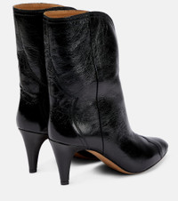 The Dytho ankle boots from Isabel Marant are made in Italy from glossed-leather with a crinkled texture. They have pointed-toe silhouettes and tonal stitch detailing reminiscent of cowboy boots. Product Details - Lining: leather - Sole: leather insole and sole - Toe shape: pointed toe - Upper: leather - Comes with a box, Comes with dust bag - Designer color name: Black - Made in Italy - Item number: P00766571 Size & Fit - Fits small to size - we recommend trying one size larger - French sizes - 7,5cm-3" heel (size EU 38)