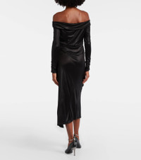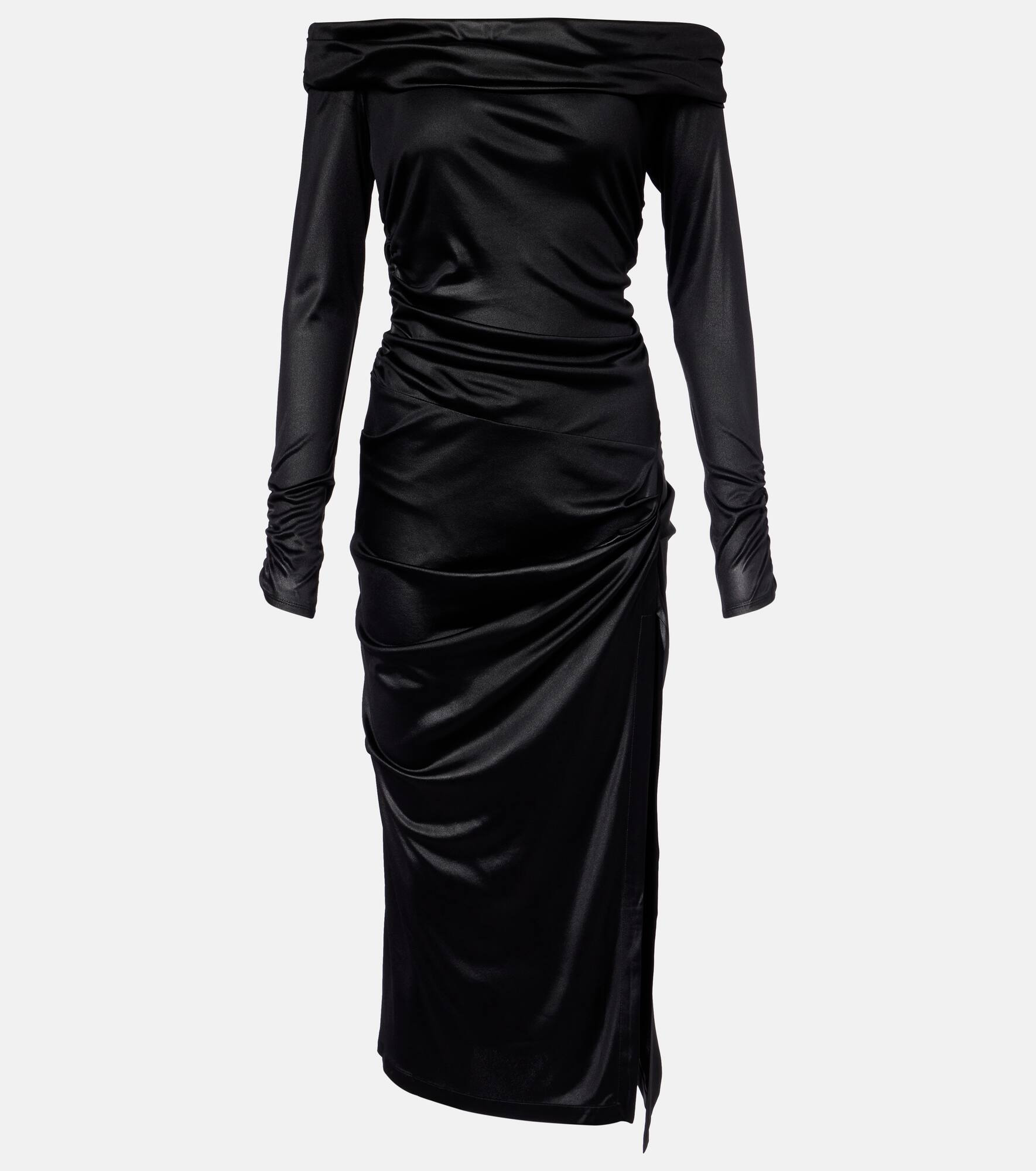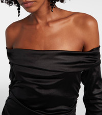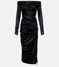 Off-the-shoulder draped satin-jersey midi dress Black