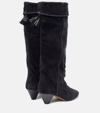 Inspired by Parisian style, each Isabel Marant piece blends refined design with effortless looks for daily life. Crafted from suede, the Elita boots are shaped with 55 mm heels, pointed toes and braided leather detailing. Product Details - Upper: leather (suede) - Lining: leather - Sole: leather insole and sole - Toe shape: pointed toe - Made in Portugal - Includes: shoe box, dust bag - Designer color name: Faded Black - Item color: black - Item number: P01070659 Size & Fit - True to size - French sizes - 5,5cm-2" heel (size EU 38) - 40cm-15.5" shaft height (size EU 38) - 41cm-16" shaft width (size EU 38) - shaft width measured on largest part of boot