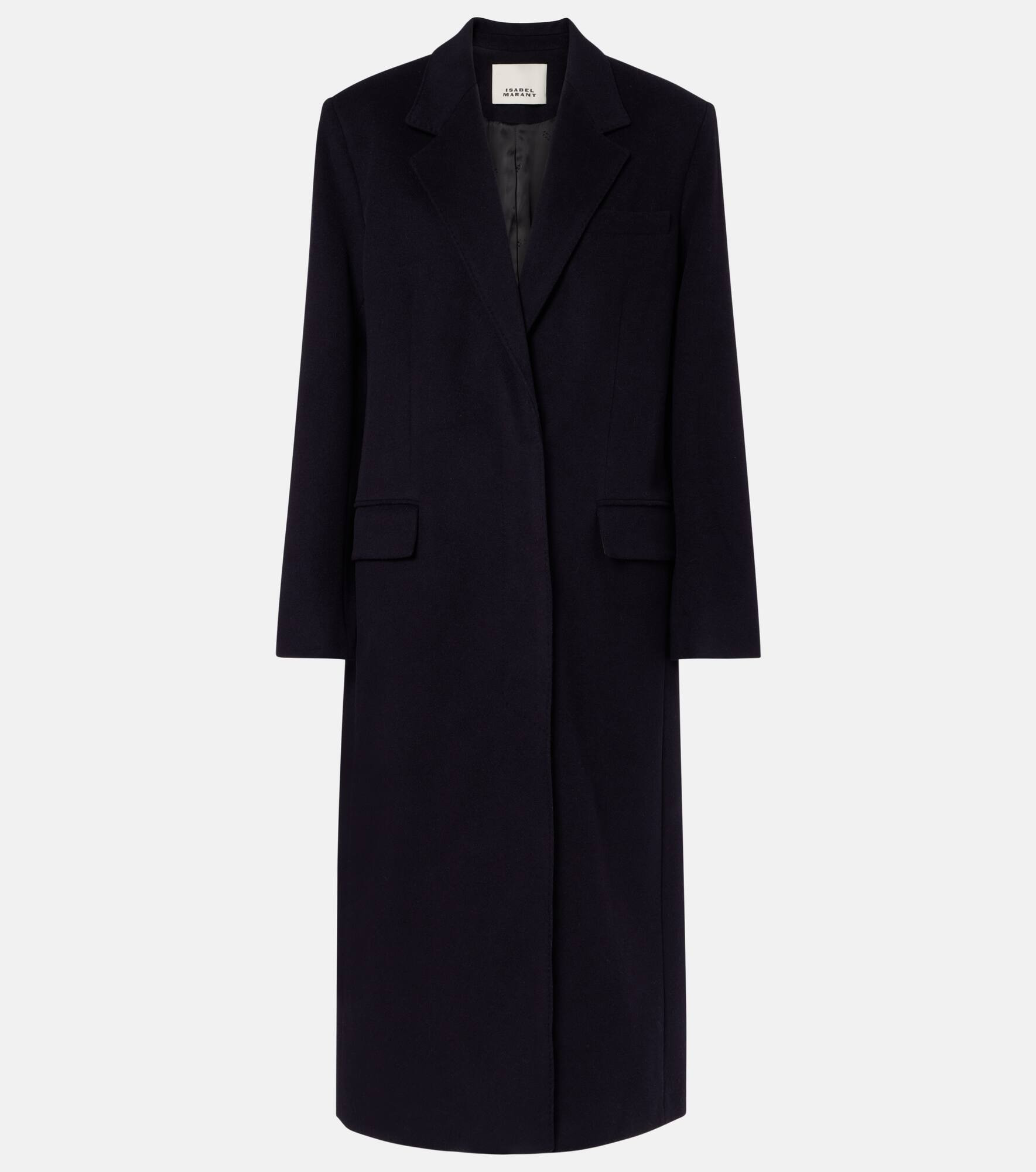 Each Isabel Marant piece is a testament to authentic and effortless Parisian style. The Ellenita coat is made from a wool blend and has notched lapels, a concealed buttoned front, and shoulder pads. Product Details - Material: 75% wool, 20% polyamide, 5% cashmere - Care instructions: dry clean - Made in Poland - Designer color name: Black Midnight - Item color: blue - Lining: 100% viscose - Lining II: 80% polyester, 20% viscose - Filling: 60% viscose, 20% acrylic, 20% polyester - Closure: concealed buttoned front - Notched lapel - Shoulder pads - Pockets: breast pocket, flap pockets, internal pocket - Cuff: four buttons - Vent: single - Fully lined - Item number: P01074380 Size & Fit - Fits large to size - we recommend trying one size smaller - Shoulder pad inserts - Designed for a loose fit - Non-stretchy fabric - slit length 51cm-20" - The model seen in the picture is 178cm-5'10" and wearing a size FR 34