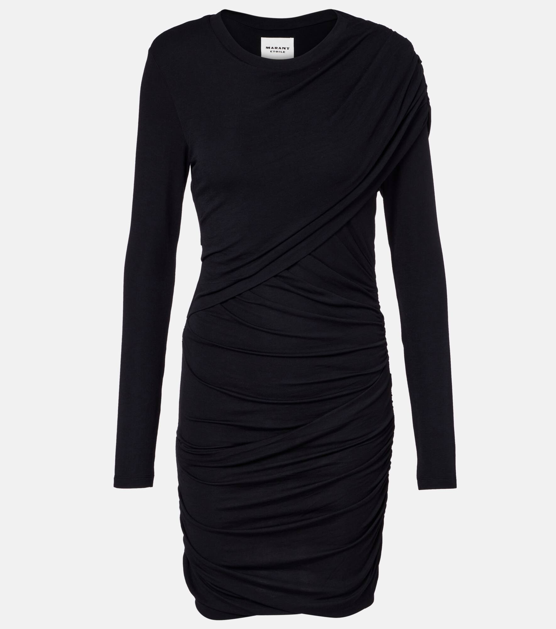 Hailing from Paris, Marant Etoile captures the art of French nonchalance through breezy yet polished staples. Cut from soft jersey, the Denise minidress showcases elegant draping, a classic crewneck, and long sleeves. Product Details - Material: 97% modal, 3% elastane - Care instructions: hand wash - Made in Portugal - Designer color name: Black - Item color: black - Item number: P01074553 Size & Fit - True to size - Fitted - Stretchy fabric - The model seen in the picture is 178cm-5'10" and wearing a size FR 36