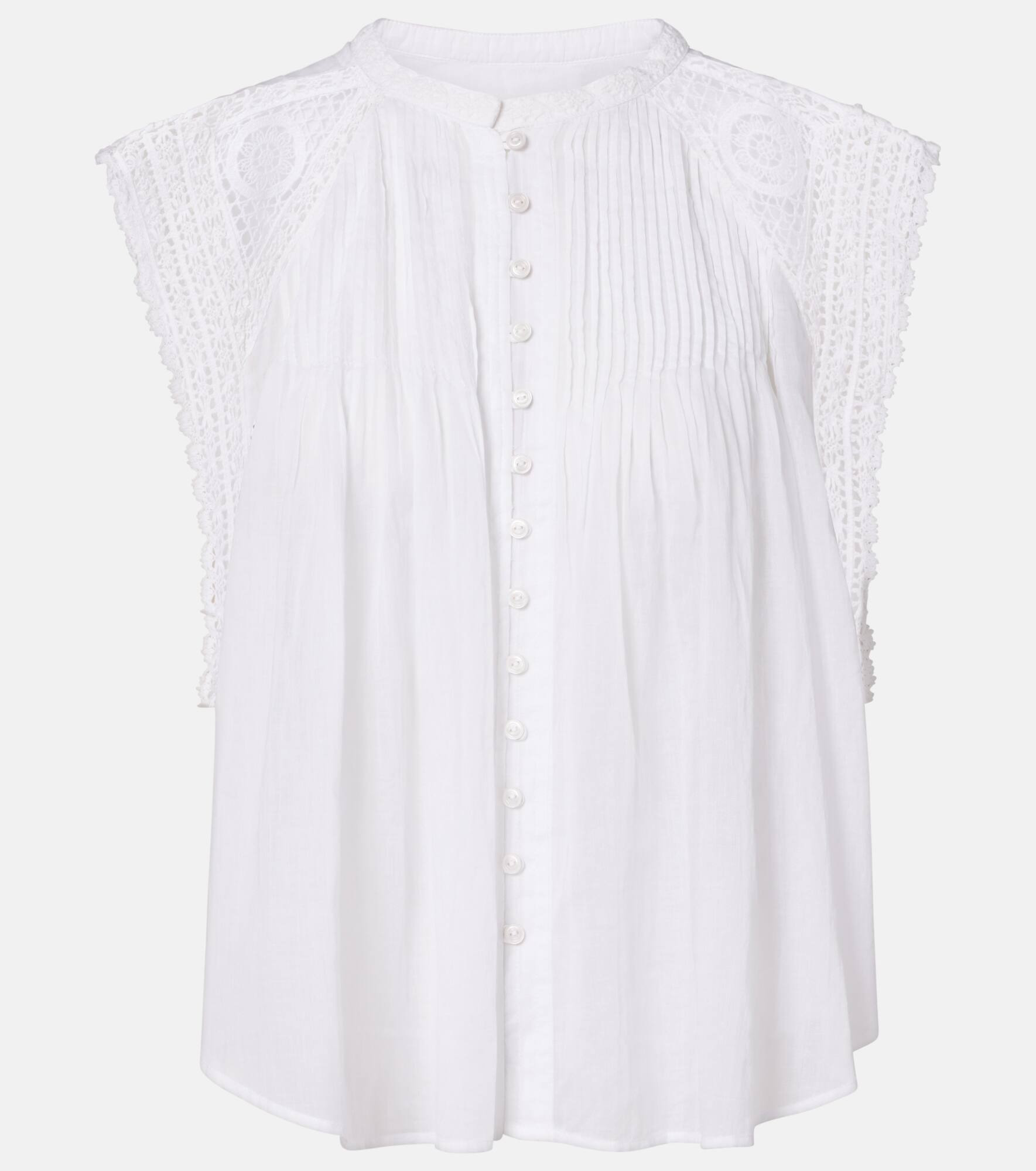The Grecia blouse by Marant Etoile is a breezy yet polished staple. Crafted from cotton with delicate lace trims, this timeless piece features a classic buttoned front—perfect for elevated everyday wear. Product Details - Material: 100% cotton (organic) - Care instructions: machine wash at 30 degrees - Made in India - Designer color name: White - Item color: white - Trim: 100% cotton (organic) - Embroidery: 100% polyester - Closure: buttoned front - Unlined - Item number: P01074539 Size & Fit - True to size - Semi-sheer - Designed for a loose fit - Non-stretchy fabric - Falls to the hip - The model seen in the picture is 178cm-5'10" and wearing a size FR 36
