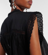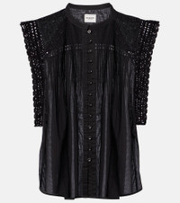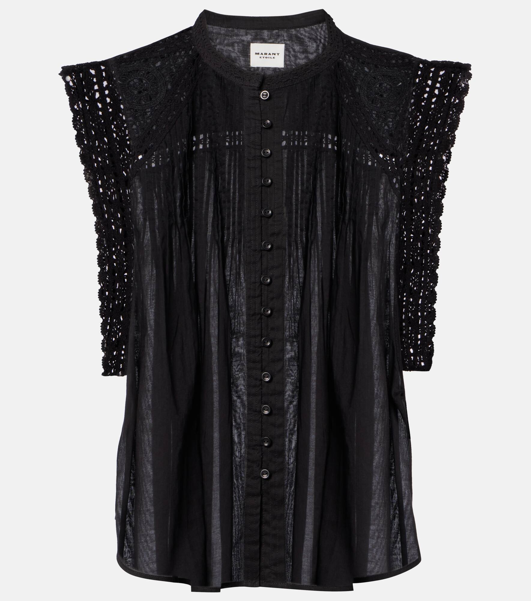 The Grecia blouse by Marant Etoile is a breezy yet polished staple. Crafted from cotton with delicate lace trims, this timeless piece features a classic buttoned front—perfect for elevated everyday wear. Product Details - Material: 100% cotton (organic) - Care instructions: machine wash at 30 degrees - Made in India - Designer color name: Black - Item color: black - Trim: 100% cotton (organic) - Embroidery: 100% polyester - Closure: buttoned front - Unlined - Item number: P01074538 Size & Fit - True to size - Semi-sheer - Designed for a loose fit - Non-stretchy fabric - Falls to the hip - The model seen in the picture is 178cm-5'10" and wearing a size FR 36