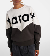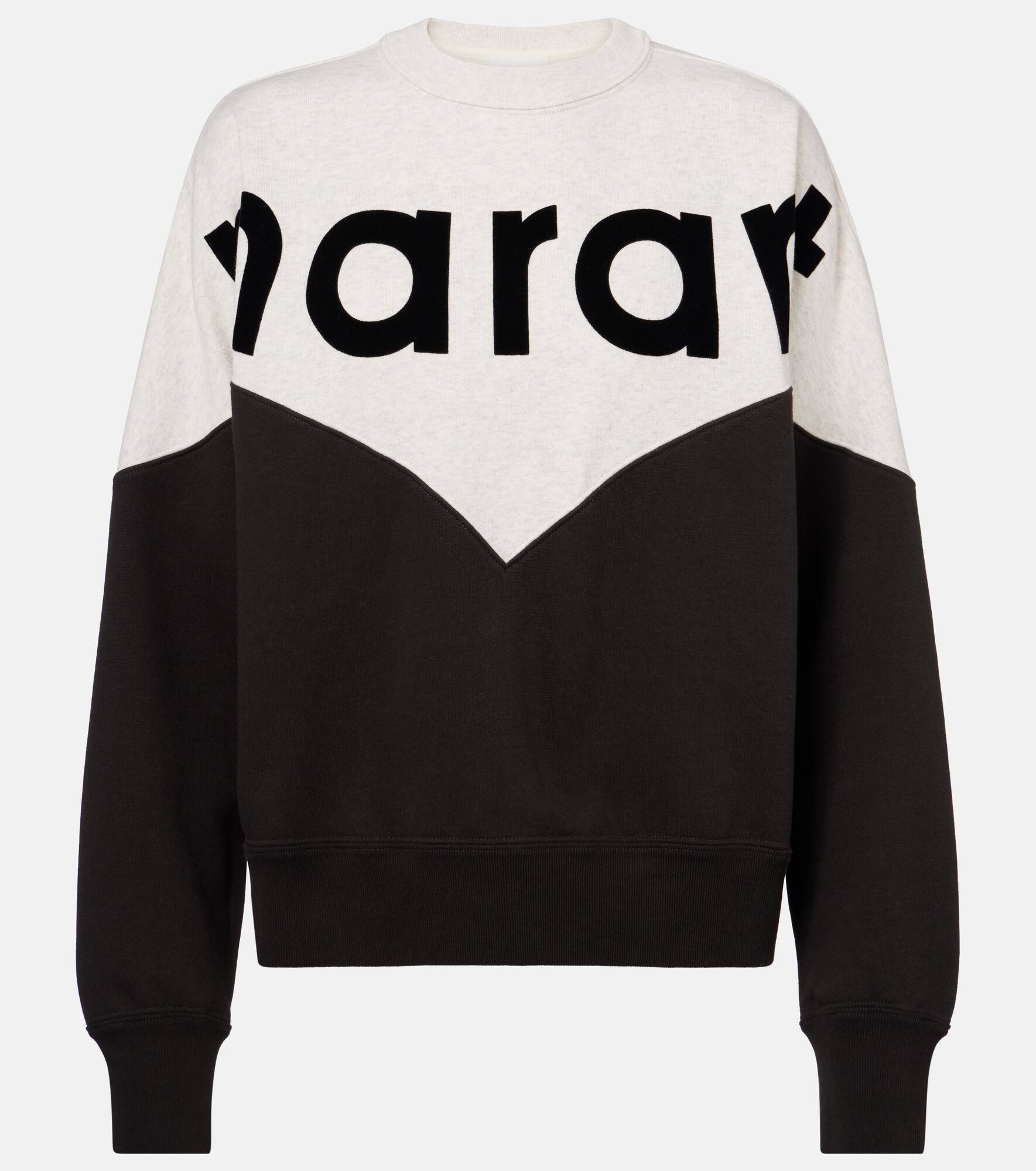 The Houston sweatshirt from Marant Etoile has a high-contrast split design in black and white. The brand's logo lettering is printed at the top of this cotton-blend jersey piece. Product Details - Material: 88% cotton, 12% polyester (recycled) - Care instructions: machine wash at 30 degrees - Made in Portugal - Designer color name: Faded Black - Item color: black - Trim: 100% cotton - Material II: 100% cotton - Insert: 100% polyamide - Hem: ribbed - Item number: P01074571 Size & Fit - True to size - Designed for a loose fit - Slightly stretchy fabric - Falls to the hip - The model seen in the picture is 178cm-5'10" and wearing a size FR 36