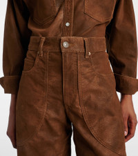 Hailing from Paris, Marant Etoile captures the art of French nonchalance through breezy yet polished staples. The Kelvina pants are crafted from faux leather and feature gold-tone hardware. Product Details - Material: 63% polyurethane, 28% viscose, 5% other fibres, 4% polyamide - Care instructions: machine wash at 30 degrees - Made in Tunisia - Designer color name: Tabacco - Item color: brown - Lining: 100% cotton - Closure: zip and button fastening - Pockets: five pockets - Hardware color: antique gold - Belt loops - Item number: P01074490 Size & Fit - True to size - Non-stretchy fabric - Tapered leg - The model seen in the picture is 178cm-5'10" and wearing a size FR 36