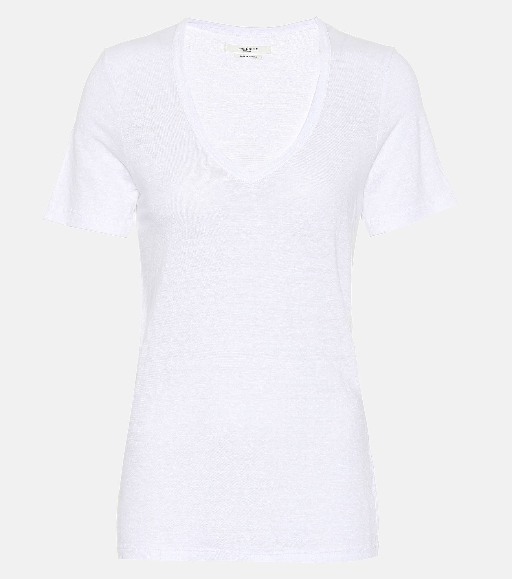 No suitcase checklist is complete without a breezy T-shirt, and the Kranger style from Isabel Marant, Étoile is the perfect option. Crafted from breathable and lightweight slub linen jersey, this classic white style has a deep V neckline and a slim silhouette. Just as well-suited for jeans as a maxi-length skirt, this piece will take you from warm destinations to weekends in the city with ease. Product Details - Material: 100% linen - Care instructions: hand wash - Made in Tunisia - Designer color name: White - Item number: P00361735 Size & Fit - True to size - Semi-sheer - Designed for a loose fit - Mid-weight material - Falls to the hip - The model seen in the picture is 178cm-5'10" and wearing a size XS