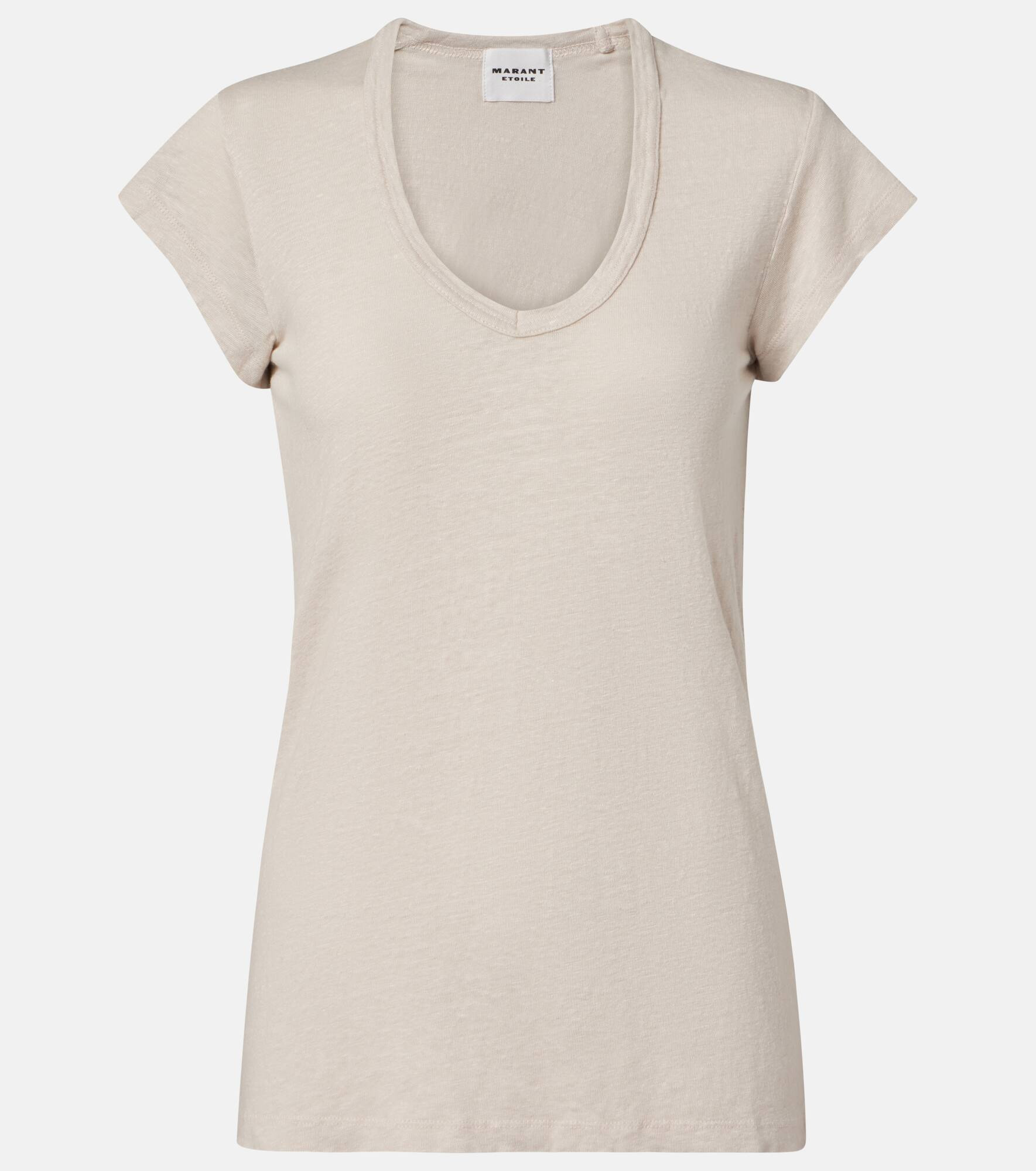 This Marant Etoile T-shirt is crafted from airy linen, making it an ideal wardrobe essential for effortless everyday wear. This piece features a classic crewneck and short sleeves for timeless appeal. Product Details - Material: 100% linen - Care instructions: machine wash at 30 degrees - Made in Portugal - Designer color name: Ecru - Item color: beige - Item number: P01074578 Size & Fit - True to size - Straight fit - Slightly stretchy fabric - Falls to the hip - Height of model is 173cm-68" and wears a size XS