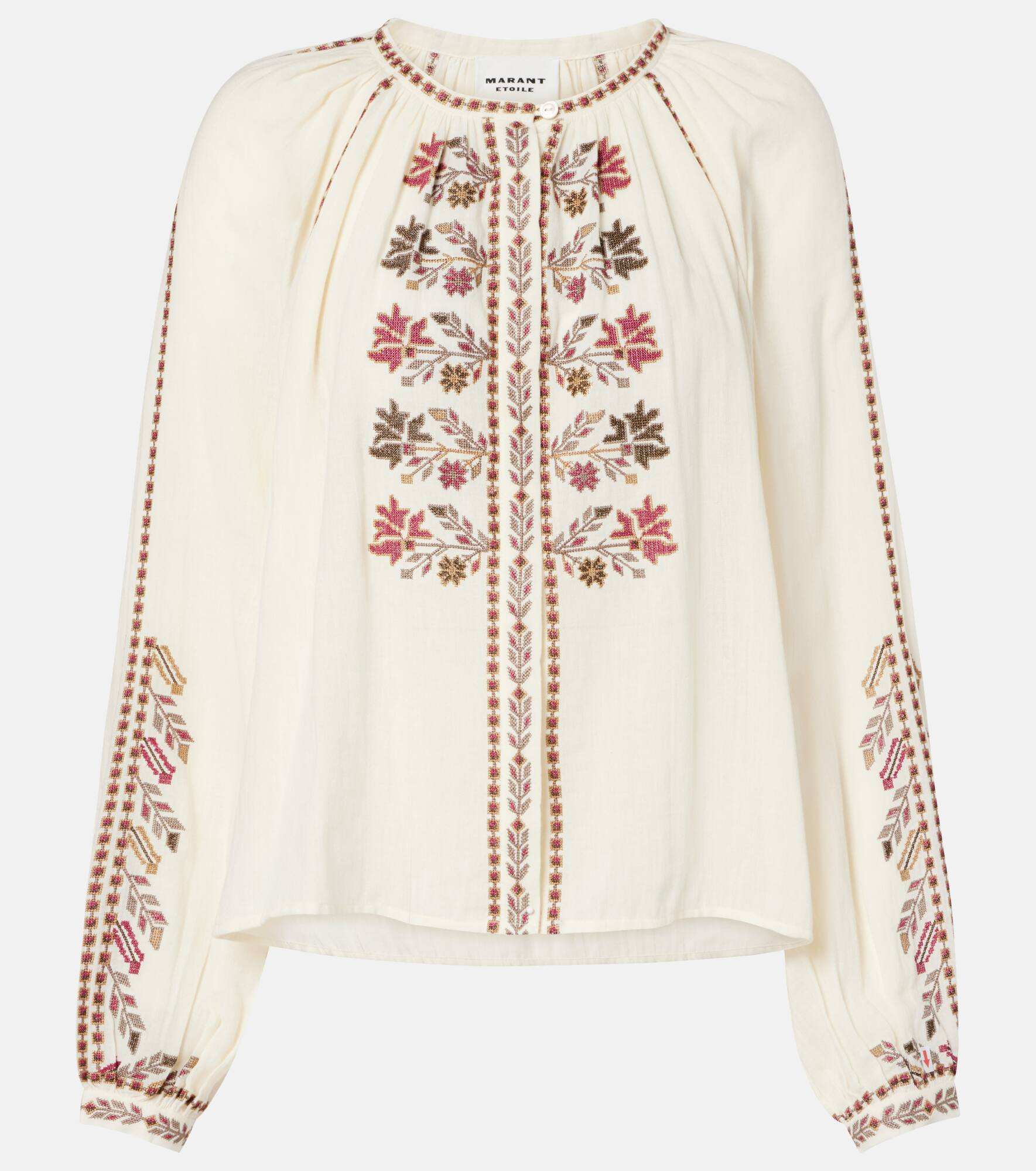 Hailing from Paris, Marant Etoile captures the art of French nonchalance through breezy yet polished staples. The Lynne blouse is made with cotton and features romantic embroidery. The style is finished with a concealed button placket. Product Details - Material: 100% cotton (organic) - Care instructions: machine wash at 30 degrees - Made in India - Designer color name: Ecru - Item color: white, multicolor - Embroidery: 100% polyester - Closure: concealed button placket - Cuff: one button - Item number: P01074545 Size & Fit - True to size - Semi-sheer - Designed for a loose fit - Non-stretchy fabric - Falls to the hip - The model seen in the picture is 178cm-5'10" and wearing a size FR 36