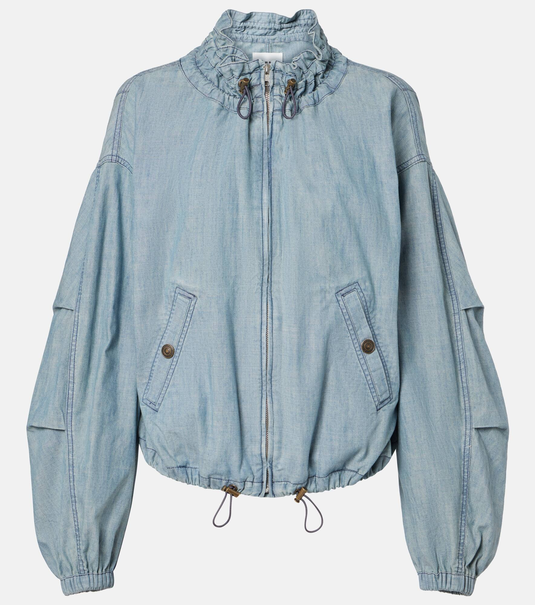 The Plume jacket by Marant Etoile marries a classic chambray fabric with a bomber construction to create a unique design. The dropped shoulders and relaxed fit convey a laid-back attitude. Product Details - Material: 80% cotton, 20% cotton (organic) - Care instructions: machine wash at 30 degrees - Made in Tunisia - Designer color name: Blue - Item color: blue - Closure: zipped front, drawstring - Cuff: elasticated - Pockets: slant pockets - Unlined - Item number: P01074509 Size & Fit - Fits large to size - we recommend trying one size smaller - Dropped shoulders - Designed for a loose fit - Adjustable hem - Elasticated hem - Non-stretchy fabric - Falls to the hip - The model seen in the picture is 178cm-5'10" and wearing a size FR 34