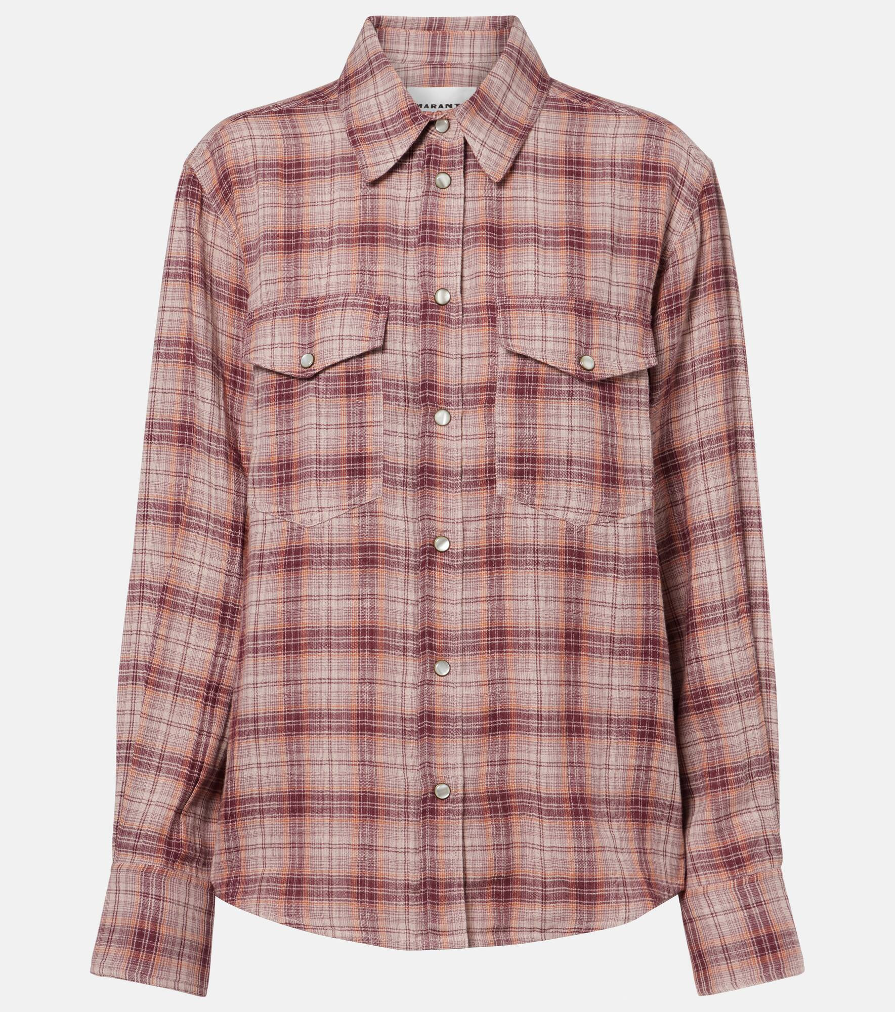 Hailing from Paris, Marant Etoile captures the art of French nonchalance through breezy yet polished staples. The Yalisa top is made with pure cotton and features a classic straight point collar and flap chest pockets. Product Details - Material: 100% cotton - Care instructions: machine wash at 30 degrees - Made in India - Designer color name: Rosewood - Item color: burgundy, beige, orange - Collar: classic (Straight point) - Closure: snap-buttoned fastenings - Pockets: flap chest pockets - Cuff: buttoned - Hem: rounded - Item number: P01074511 Size & Fit - True to size - Designed for a loose fit - Non-stretchy fabric - Falls below the hip - The model seen in the picture is 178cm-5'10" and wearing a size FR 36