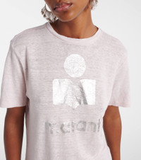 Hailing from Paris, Marant Etoile captures the art of French nonchalance through breezy yet polished staples. Made from lightweight and breathable linen, the Zewel T-shirt comes in a relaxed silhouette and is complete with a logo print. Product Details - Material: 100% linen - Care instructions: hand wash - Made in Tunisia - Designer color name: Light Pink/ Silver - Item color: pink - Collar: crewneck - Item number: P01074574 Size & Fit - True to size - Designed for a loose fit - Slightly stretchy fabric - Falls to the hip - The model seen in the picture is 178cm-5'10" and wearing a size XS