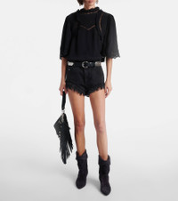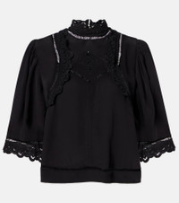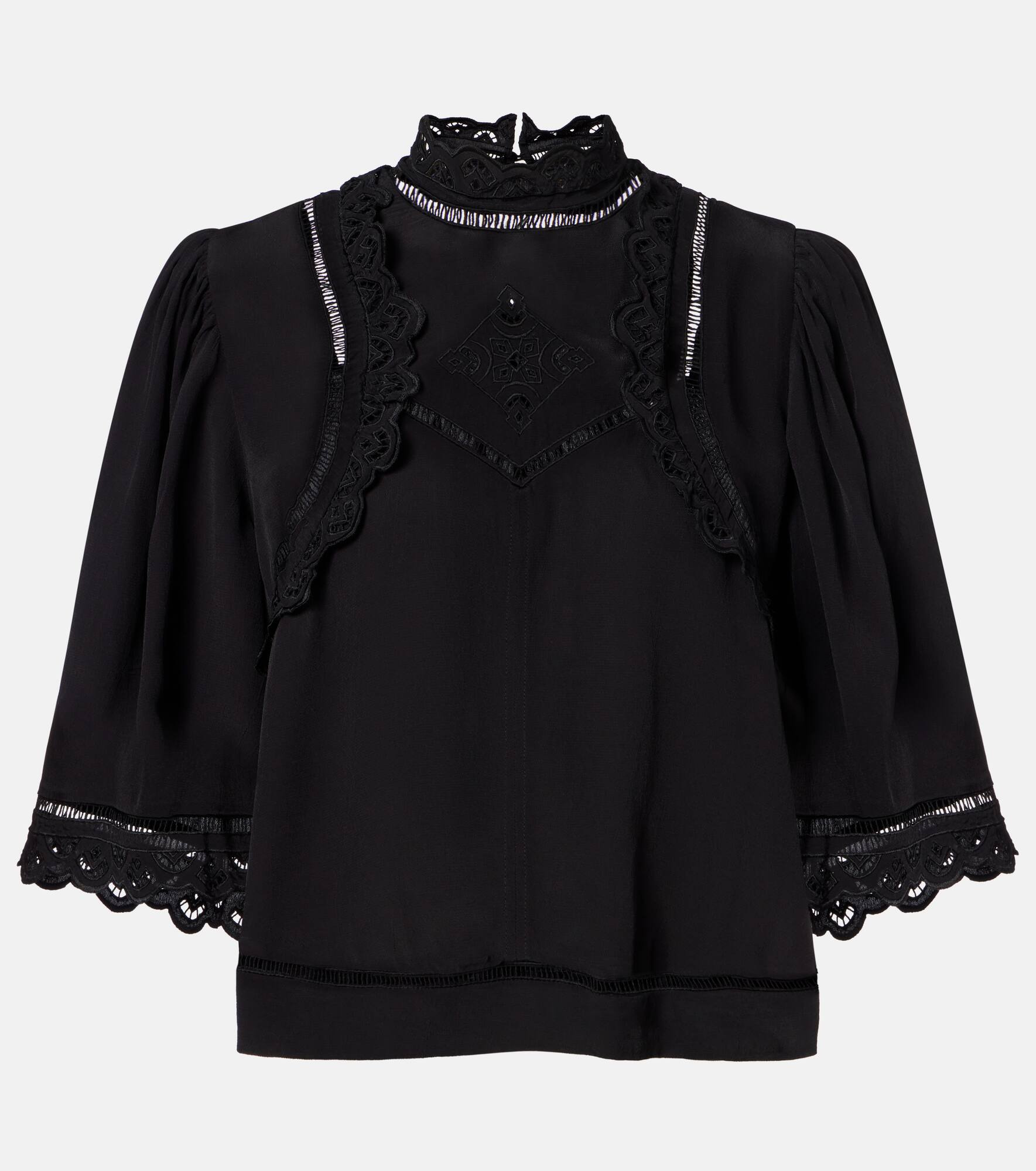 The Frany crepe top from Isabel Marant is a statement of refinement for both everyday looks and formal occasions. This piece is cut in a slightly cropped silhouette and complete with broderie anglaise finishes. Product Details - Material: 100% viscose - Care instructions: dry clean - Made in India - Designer color name: Black - Item color: black - Embroidery: 100% silk - Closure: buttoned back - Unlined - Item number: P01074434 Size & Fit - True to size - Designed for a loose fit - Non-stretchy fabric - Falls to the hip - Height of model is 175cm-69" and wears a size FR 36
