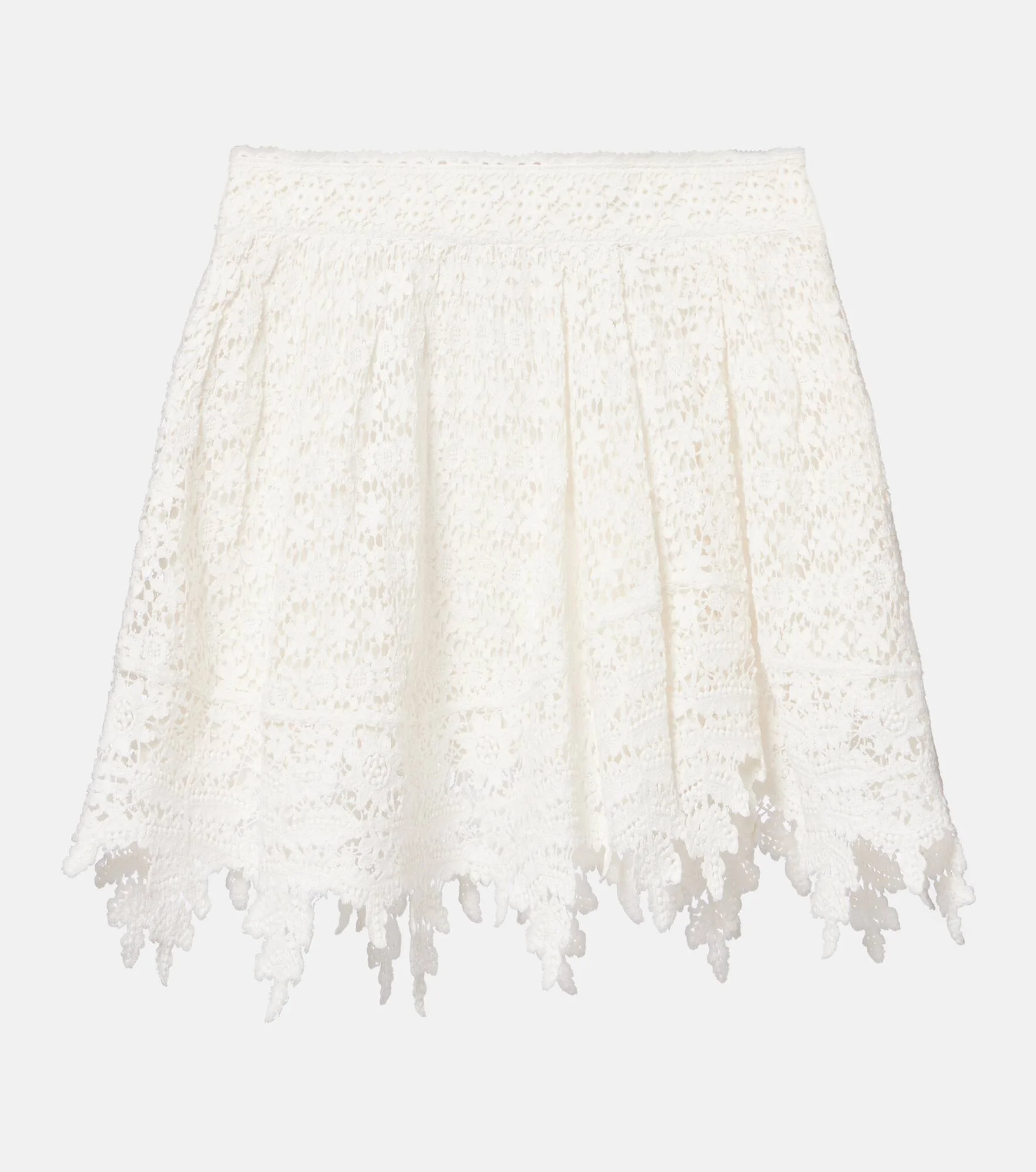 Inspired by Parisian style, each Isabel Marant piece blends refined design with effortless looks for daily life. A chic addition to your wardrobe, the Hanta miniskirt is made from floral cotton lace. Product Details - Material: 100% cotton (organic) - Care instructions: dry clean - Made in India - Color: white - Designer color name: White - Item color: white - Lining: 100% ramie - Lining II: 100% silk - Material II: 100% cotton - Item number: P01133906 Size & Fit - True to size - Non-stretchy fabric - Sits low on the hips - The model seen in the picture is 178cm-5'10" and wearing a size FR 36